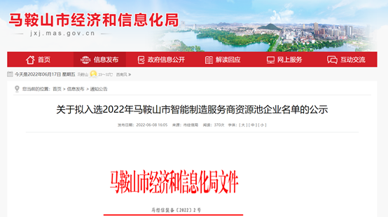 入選名單是根據(jù)《關(guān)于征集2022年馬鞍山市智能制造服務商的通知》,由馬鞍山市經(jīng)濟和信息化局組織開展,經(jīng)自主申報、第三方評審、綜合審核等程序后選出。