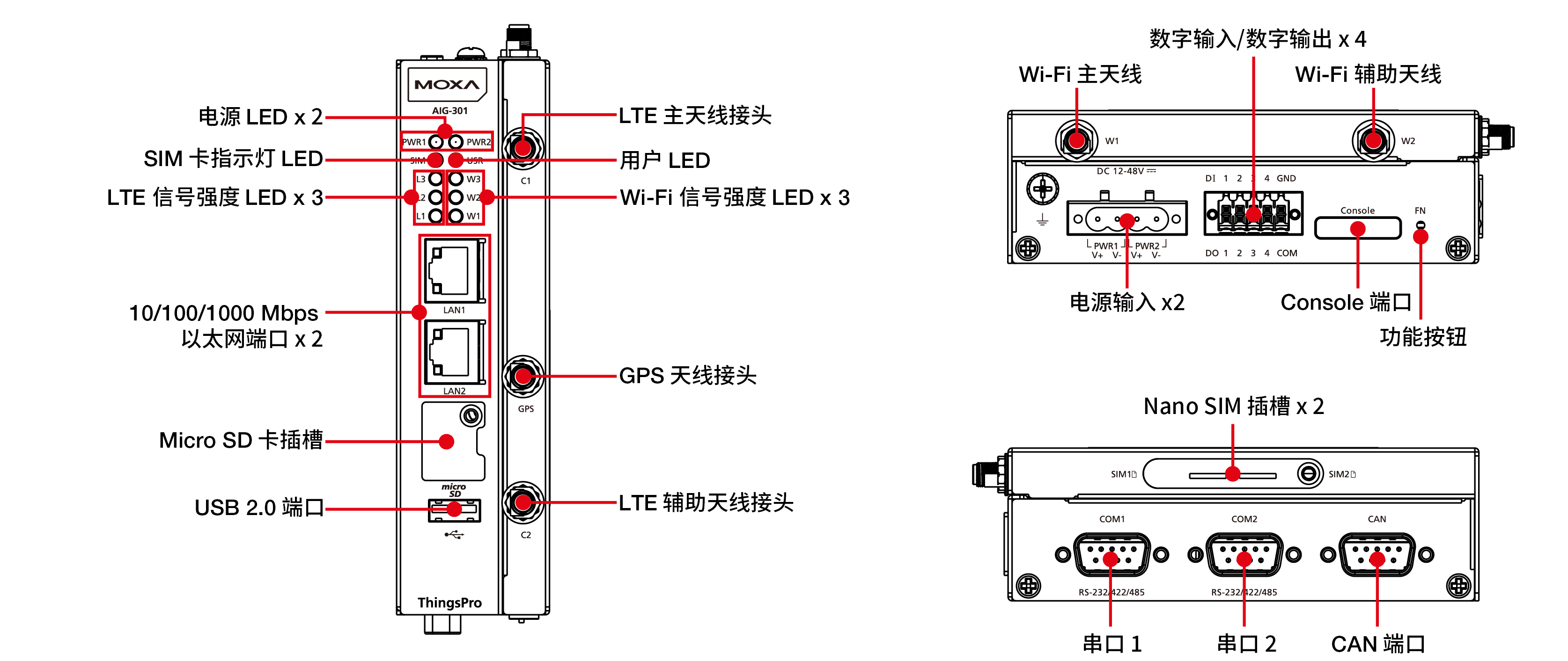 RP-SMA x 2(不包括 AIG-301-AZU-LX/T-AZU-LX 型號)