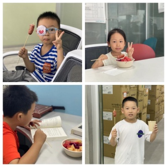俱樂部給孩子們準備了“水果攤”“爆米花攤”“烤腸攤”“雞米花攤”