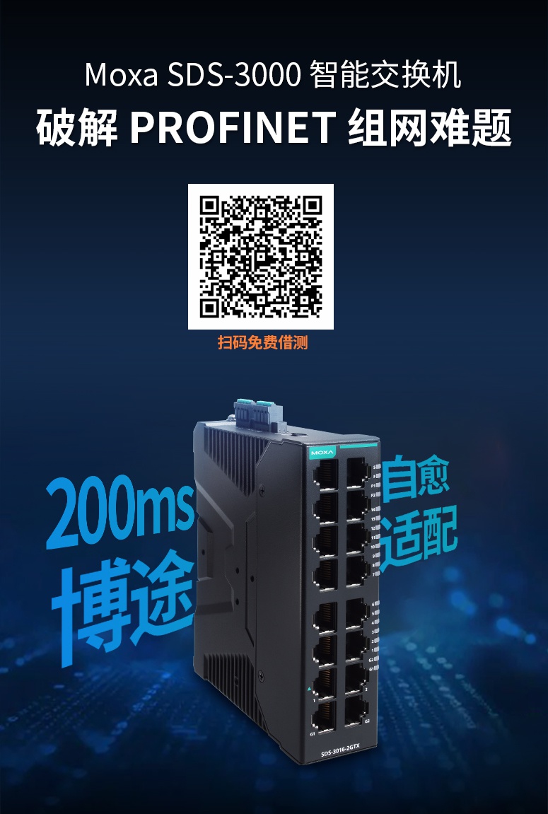 在數字化轉型的浪潮中,可靠的網絡是企業(yè)的核心競爭力。Moxa SDS-3000 智能交換機,在 PROFINET 生態(tài)下輕松實現 TIA 博途組態(tài)、構建 MRP 冗余環(huán)網,為每一個 PROFINET 節(jié)點注入穩(wěn)定基因。