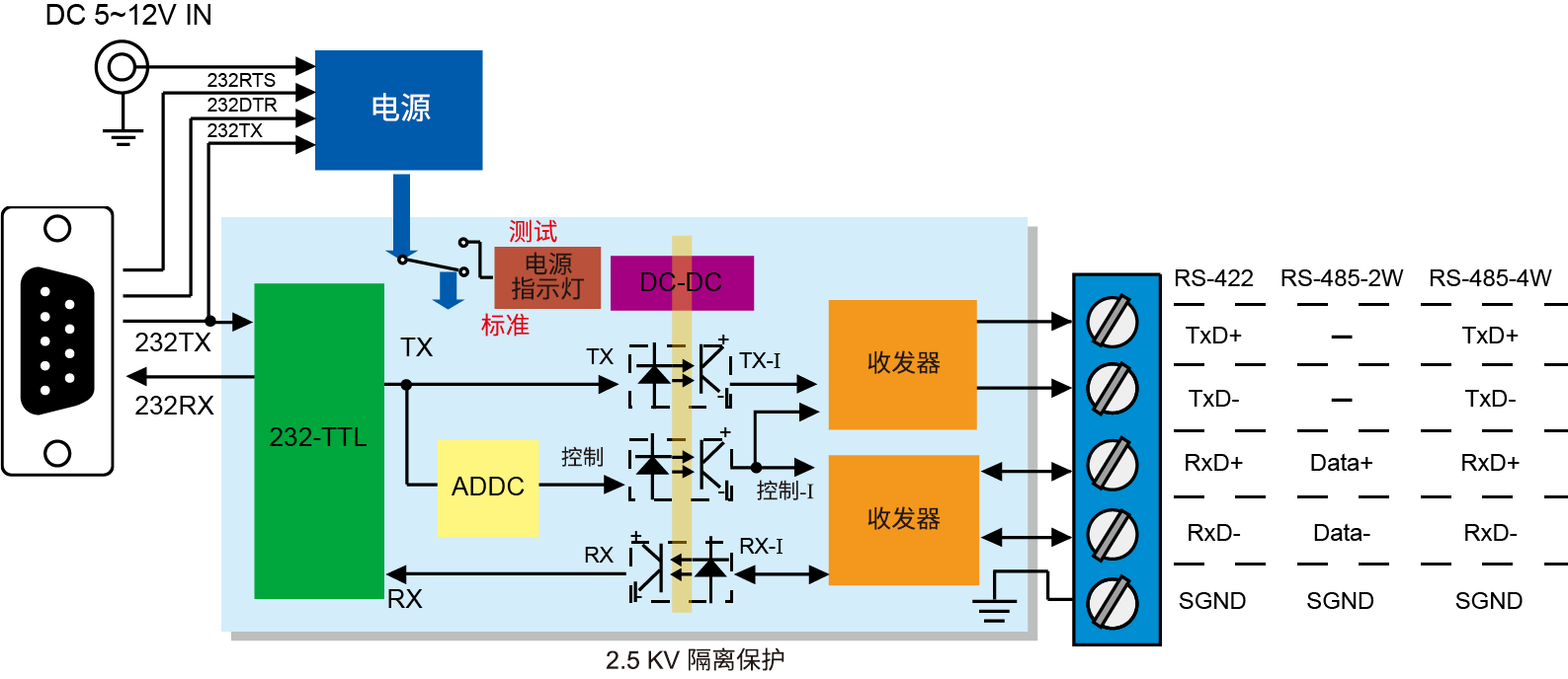 串口取電型RS-232到RS-422/485轉(zhuǎn)換器,可選2.5KV光電隔離保護