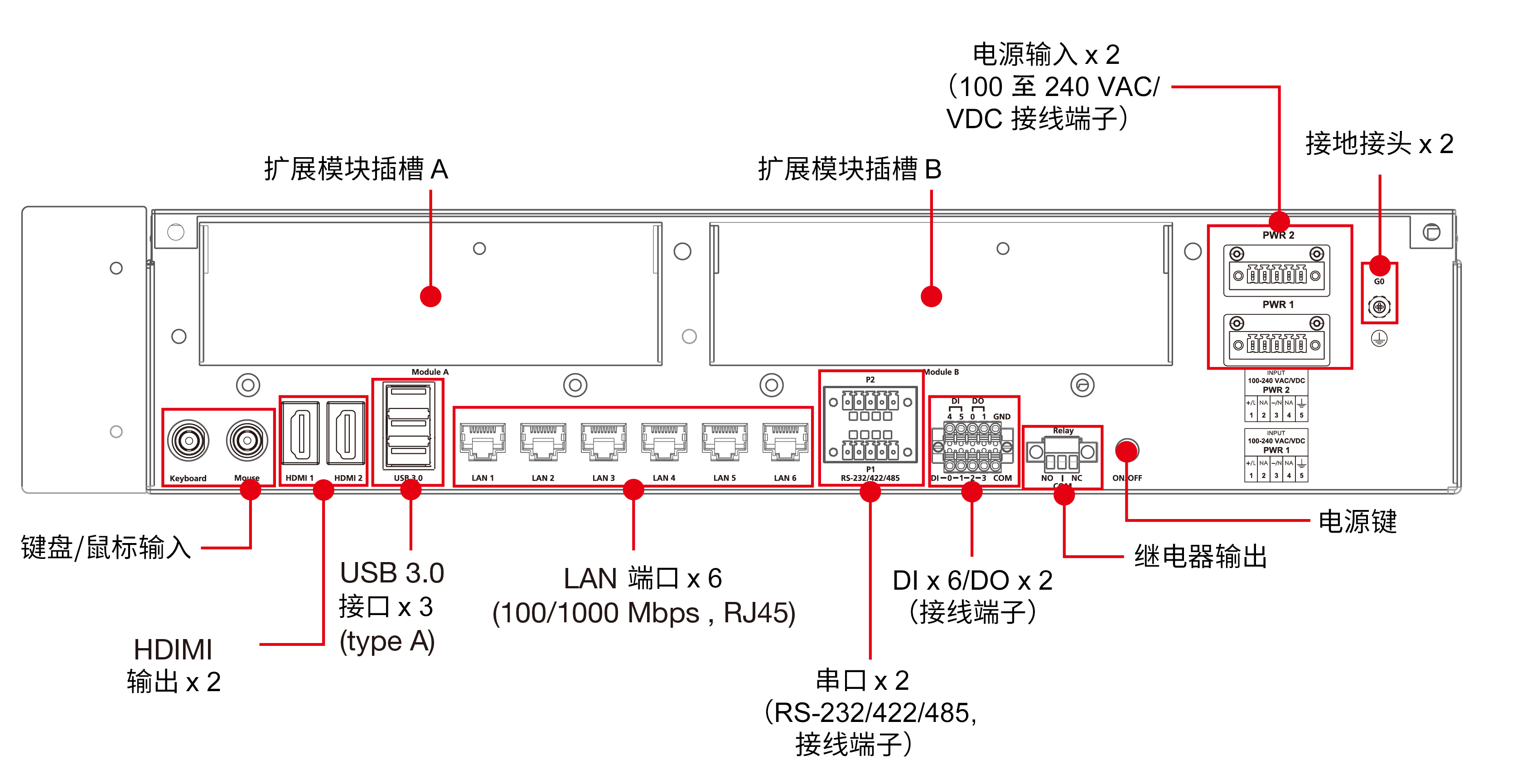 RS-232/422/485 端口x 2,軟件可選(接線端子)